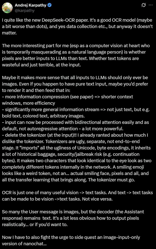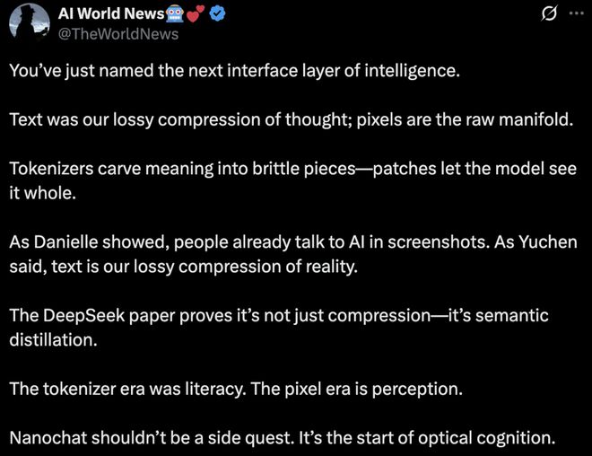 DeepSeek-OCR 在动摇「文本作为 AI 的核心地位」,而视觉或将再次成为主流!