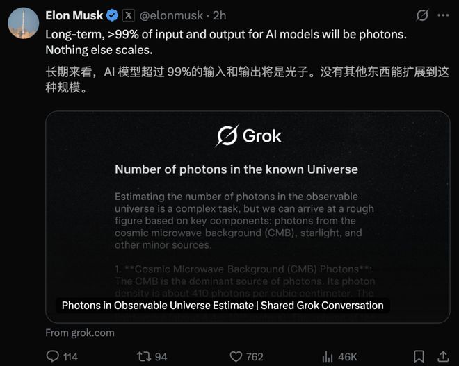 马斯克让 Grok 估计了一下已知宇宙的光子总量: