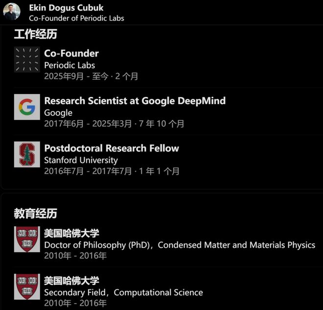 另一位是 Ekin Dogus Cubuk(昵称「Doge」),曾在谷歌 DeepMind 领导材料科学与化学研究。