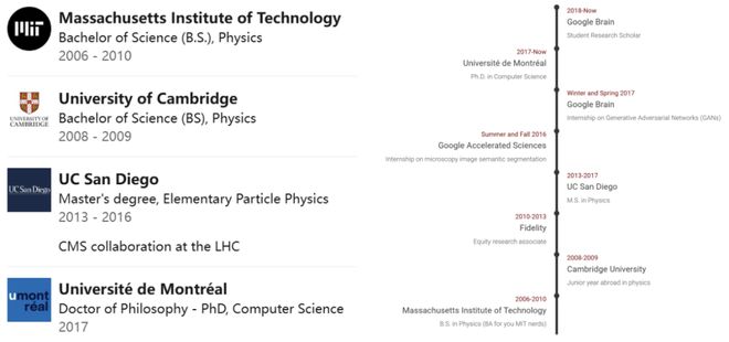 随后,他又在蒙特利尔大学获得了计算机科学博士学位,师从 Yoshua Bengio 和 Hugo Larochelle。