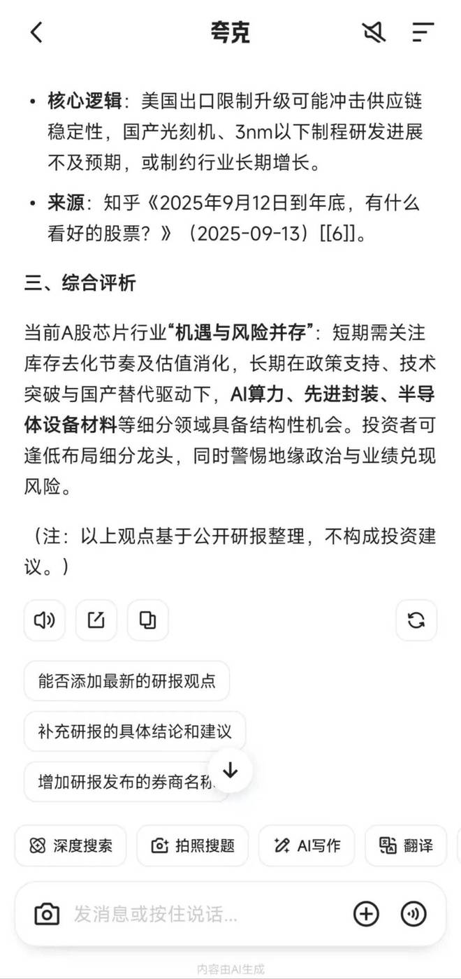 “帮我分析最近关于A股市场芯片行业的若干券商研报。”