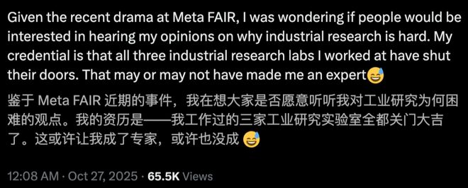 Meta 大裁员,连老将田渊栋都中枪。从炫目 Demo 到失业压力,工业研究为何困难重重?