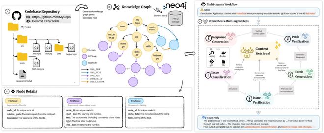 它不仅通过开源代码和 Neo4J 知识图谱技术,让 AI「读懂代码」,还能在实际 GitHub 项目中实现自动修复错误、验证补丁,甚至生成可直接提交的修复说明。