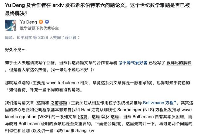 而他当前最瞩目的成就,莫过于今年初和马骁、Zaher Hani 一起突破的希尔伯特第六问题。