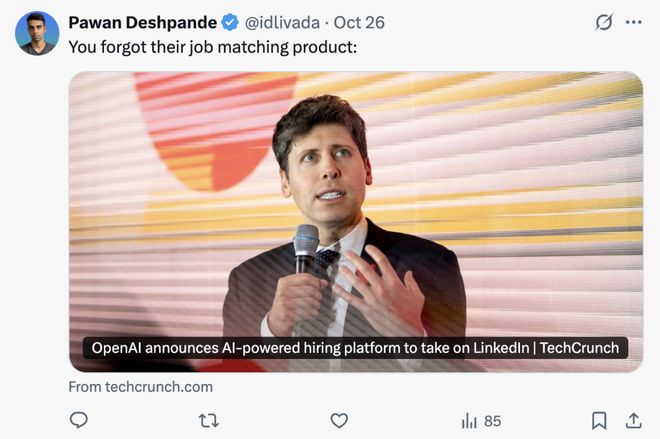无他,虽然很难说奥特曼这一手操作有啥毛病,但看到全球最顶级 AI 公司所展现的“想象力”,不过是把 AI 融进现有架构,而非重新开天辟地,多少有点……