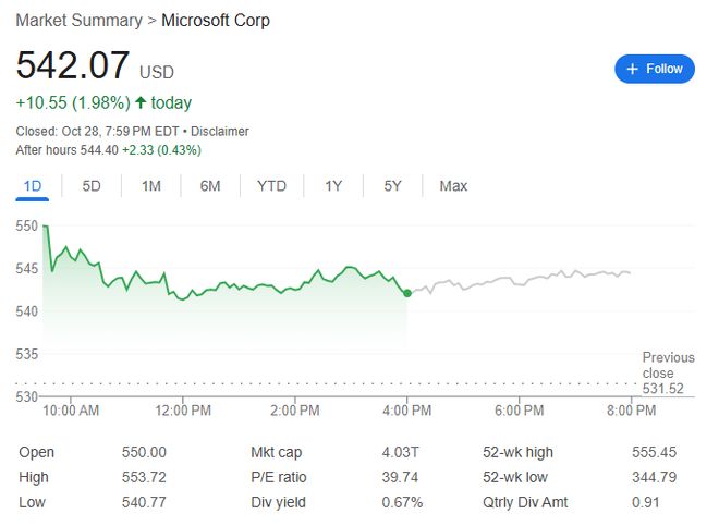 与此同时,微软股价上涨2%,市值稳稳站上 4.03 万亿美元。这一增长的直接催化剂是 OpenAI 达成的一项重大重组协议,该协议使其持有的 OpenAI 股份价值飙升。据《金融时报》报道,OpenAI 的重组使其估值达到 5000 亿美元,微软的持股比例为 27%,对应价值约 1350 亿美元。