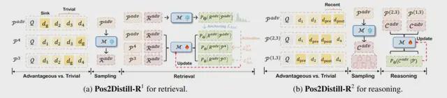 团队发现,位置偏差在“检索”和“推理”这两类任务中诱发的表现不同,因此基于上述核⼼原理,团队分别设计了两种专⻔的实现⽅案:Pos2Distill-R1 和 Pos2Distill-R2。