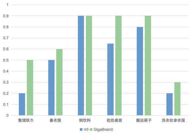 实验结果表明,GigaBrain-0 的成功率显著优于现有 SOTA 方法。