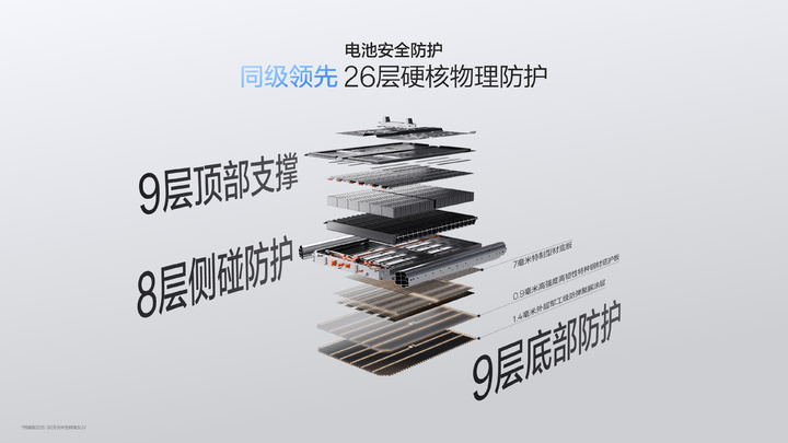 对于碰撞后电池起火的风险,极氪表示 7X 采用的麒麟电池底部采用 9 层电池防护设计,安装了 7mm 特制型材底板、0.9mm 高强度高韧性的特种钢材底护板、外层 1.4mm 军工级防弹聚脲涂层,可以 · 逐层吸收能量,保障电池托底安全,有效避免电池受挤压后起火。