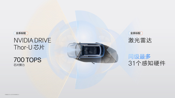 极氪的辅助驾驶功能向来被视为短板,这次焕新版 7X 同样做了重点升级,辅助驾驶芯片从英伟达 Orin-X 升级到英伟达 Thor-U,算力从 508 TOPS 提升到 700 TOPS。
